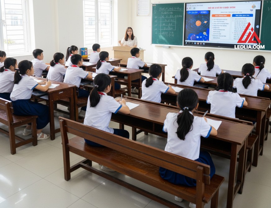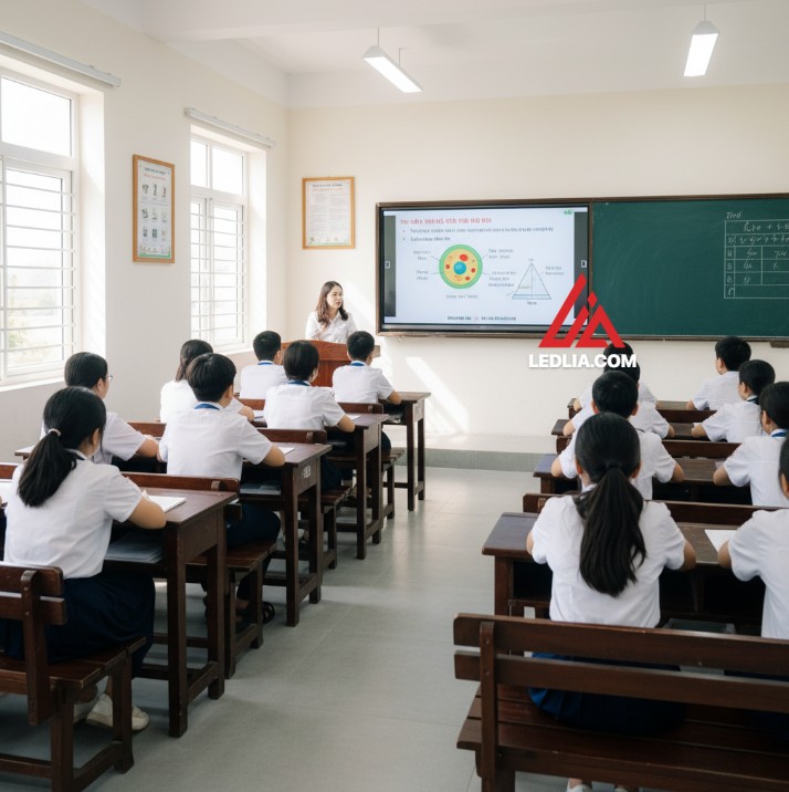 - Vị trí và góc lắp đặt: Ảnh hưởng đến khả năng quan sát của học sinh. Lắp quá cao, quá thấp hoặc lệch góc sẽ làm hình ảnh biến dạng, học sinh khó nhìn.